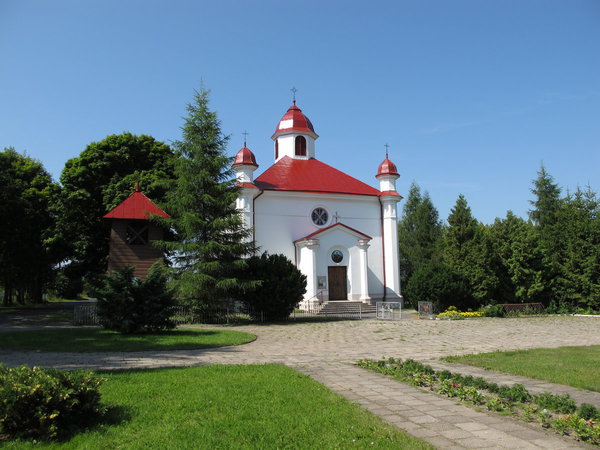 Pierwszym miejscem do którego miałem dojechać był cmentarz wojenny pod Rokitnem. Choć mapy Google wysyłały mnie tam drogami gruntowymi przez las wolałem dotrzeć drogą asfaltową. Musiałem więc las objechać. Droga prowadziła przez kilka wiosek. Kościół w Klonownicy Dużej rzucał się w oczy z daleka.