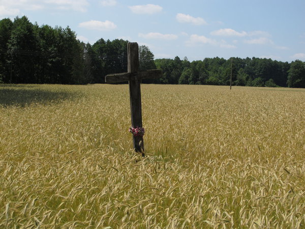 Jechałem do Zaczopek. Jest tam cmentarz wojenny, który znam tylko ze zdjęć. Po drodze mijałem stary krzyż w zbożu. Bardzo mi się spodobał. Wydał mi się charakterystyczny dla tego regionu. Zanurzony w dojrzewających kłosach i samotny.