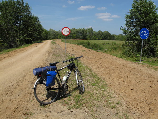 Przejazd ścieżką rowerową tutaj można potraktować jak niezły wyczyn. Najwyraźniej jeszcze trwają prace przy jej budowie.