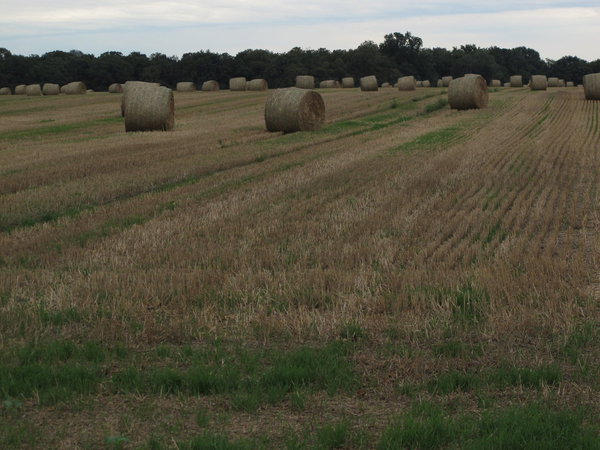 Deszczyk letni ale już tego lata się nie czuje. Przy drodze połamane drzewa. Miejscami całe grupy drzew. To ślady wcześniejszej burzy. Tydzień wcześniej też tak wyglądały. I jesień na polach.