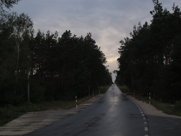 Za mokro było by coś płonęło poza duszą. Ta jednak się rozpaliła radośnie. Później znów padał deszcz i tak było do Ostrowca Świętokrzyskiego. Tu drogi były suche, a ja byłem zagubiony. Miałem wydrukowany plan z zaznaczoną drogą, którą chciałem pojechać ale już przy wjeździe do Ostrowca pojechałem nie tą drogą. Może to i dobrze. Gdy już znalazłem się w środku miasta zobaczyłem drogowskazy objazdu do ulicy którą miałem jechać. Ale przecież trzymanie się znaków jest dla mięczaków. Zapuściłem się więc na wyczucie w głąb miasta. Wyczucie ma dokładność rzędu „mniej więcej”. Tak więc udało mi się pojechać w odpowiednim kierunku ale musiałem nadłożyć drogi. Być może byłem w Denkowie – jak chciałem. Ale tylko być może. Powstaje tam nowa droga, wiadukt na drodze do Ćmielowa. Udało mi się tymi nowymi drogami dojechać do drogi gruntowej którą dojechałem w miejsce znajdujące się około 100 m od miejsca w którym w te drogi wjechałem. Wyczyn