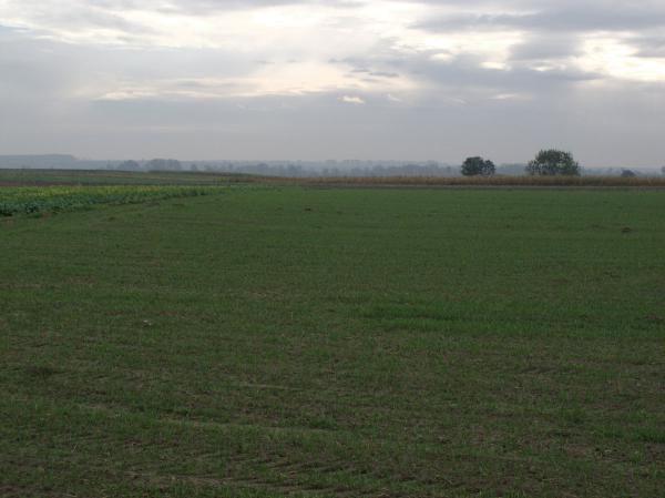 Z Chodla pojechałem w stronę Borzechowa. I w tym miejscu zaczęła się część ciekawsza. Najpierw miałem ochotę zajechać pod kościół na wodzie w dawnej osadzie Loret. Ale za późno sobie o nim przypomniałem. Zupełnie mi nie przeszkadzało to, że nie przewidziałem wcześniej odwiedzin ruin kościoła. A gdybym dobrze zaplanowała przejazd to na pewno bym w planie miał i ten punkt. Dlaczego tak było odkryłem kilka kilometrów dalej. Miałem przejeżdżać przez miejscowość obok której powinien znajdować się stary cmentarz przy polnej drodze. Nie naniosłem sobie tego miejsca na mapy. Ale pamiętałem, że gruntowa droga od asfaltowej odchodzi zygzakami. Widząc coś takiego i to z tej strony z której się tego spodziewałem bez wahania zjechałem z asfaltu. Zaraz wbiłem się w piach i trzeba było zejść z roweru. Nie pasowały mi zabudowania przy drodze. Nie pamiętałem ich z map. Przy sobie miałem tylko mapę drogową ale to zawsze coś. Rzut oka wystarczył bym przypomniał sobie, że z Chodla do Borzechowa prowadzą dwie drogi. Byłem na niewłaściwej i do tego dłuższej. Plusem na pewno było to, że nigdy jeszcze nią nie jechałem. Warto więc się porozglądać. Choć było dość jasno to słońca jeszcze nie widziałem. Ale już znikały mgły.