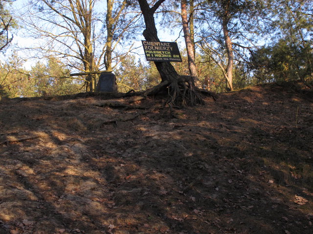 Nieco dalej jest miejscowość Wróble. Kiedyś podesłano mi informację, że jest tam cmentarz z I wojny światowej. Od tamtego czasu wyjaśniło się, że jest to mogiła żołnierza polskiego poległego w wojnie polsko-bolszewickiej. A ja i tak nadal nie wiedziałem w którym to miejscu. Kazimierz Paciorek podpowiedział, że na wzniesieniu obok szosy nadwiślańskiej. Powinienem więc jechać w pobliżu. Tylko jadąc w przeciwną stronę nic nie dostrzegłem. Teraz na wzniesieniu dostrzegłem białą tabliczkę wśród drzew. Wdrapałem się by zobaczyć co to jest.