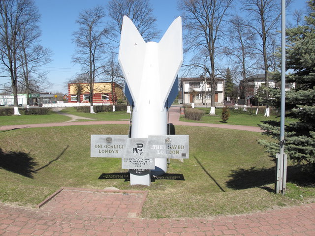 Wiatr już wiał dość mocno. W drodze z Łuzek do Łosic przyjemnie mnie popychał. Akurat na tej drodze spotkałem wielu drogowców. Wycinają drzewa. Tego nie lubię. Ale przynajmniej niektórzy mnie pozdrawiali. Jak myślę dlatego, że też byłem w pomarańczowej kamizelce odblaskowej. Od Łosic do Sarnaków już wiatr przeszkadzał. Do tego droga wąska, a na niej dużo TIR-ów. Wiele razy chciałem im zjechać z drogi ale pobocza są tu za miękkie. Ostatecznie przepuszczałem je tylko na podjazdach. Za to jak wszędzie busy i autobusy pasażerskie niemal się o mnie ocierały. Kolejny raz dały mi odczuć, że ich kierowcy oceniają wartość życia ludzkiego na podstawie cennika biletów. Najważniejsze, że dojechałem. Zjechałem w drogę przy której powinienem odnaleźć cmentarz żydowski i nie byłem pewien czy to ta droga. Gdy stanąłem przy krzakach porastających cmentarz zamarły prace w ogródkach. Nie wiem dlaczego ale tak mam często. Jak podchodzę do cmentarza żydowskiego, a w pobliżu mieszkają ludzie to od razu staję się głównym punktem programu. Ludzie stali i patrzyli. Tego dnia mi się to nie spodobało i nie zapytałem ich czy to ulica Konopnickiej (jeszcze nie miałem pewności czy to jest to miejsce). Podjechałem do centrum, do pomnika partyzantów zaangażowanych w przekazanie Brytyjczykom informacji o V2.