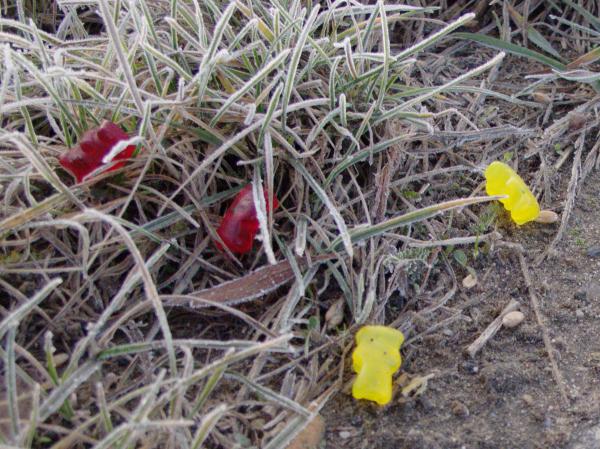 W zaszronionej trawie na poboczu dostrzegłem zmarłe z wychłodzenia miśki.