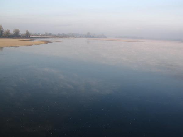 Głównym "generatorem" tych mgieł była chyba Wisła. To znad niej unosiły się obłoki pary rozpełzające się po brzegach. Niski poziom wody – jeszcze widać plaże, które tak spodobały się Kumari.