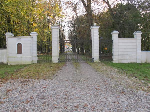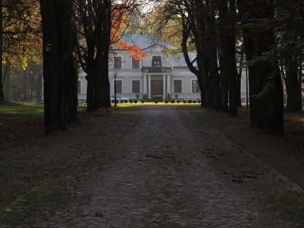 Może tylko wejście od drogi głównej jest zamknięte na kłódkę? Obok są zabudowania folwarczne. Tam też na pewno jest jakieś wejście. Na tym brakuje jakichkolwiek informacji o tym czy właściciele pozwalają na wizyty turystów. Pałac jest zadbany. Podobnie park. Same plusy. A natura tak nie lubi. Jakiś minus musi być. Może właśnie jest nim zamknięcie przed turystami? Ale przypomniałem sobie, że i w Żelechowie jest pałac do którego nie mogłem podejść. Tam jednak trwał wtedy remont. Jak jest teraz? Obiecałem sobie, że przejeżdżając sprawdzę.