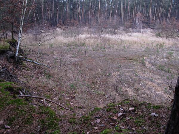 Wg mapy cmentarz znajduje się na wzniesieniu. Nie mogłem tego wzniesienia zlokalizować na mapach Geoportalu. Już wiem dlaczego. Wzniesienie zostało rozkopane. Była tu kopalnia piachu. Może nielegalna ale była. Teraz jest dziura w ziemi.