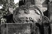 Katarzyna Olzacka: Należy też zwracać uwagę, by nie było też zbyt dużo kontrastów między cieniami i światłami, na przykład kiedy słońce tak pada, że jedna część płyty nagrobnej jest mocno oświetlona, a druga pozostaje w cieniu. Efekt będzie najczęściej taki, że albo będziemy mieć mroczne cienie, albo wypalone światła. W takim przypadku można zdjęcie lekko doświetlić lampą błyskową - chociaż sama rzadko kiedy używam lampy. Kiedy fotografujemy macewy dobrze jest trochę niedoświetlić zdjęcie, wtedy płyty będą bardziej plastyczne i ładniej wyjdzie nam rysunek płaskorzeźb i napisów.