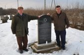Feliks Karpman i Avner Yonai przy odsłoniętym we wrześniu 2009 r. symbolicznym nagrobku rodziny Rybak