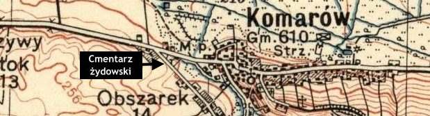 Cmentarz żydowski w Komarowie został założony w pierwszej połowie XVIII wieku i zlokalizowany jest przy głównej szosie wiodącej do miasteczka od trasy Zamość - Tomaszów Lubelski, kilkaset metrów przed rynkiem. Cmentarz zniszczono w okresie II wojny światowej. Procesu dewastacji dokończono już po wyzwoleniu. Przez wiele lat nagrobki były wykorzystywane przez niektórych mieszkańców jako progi czy płyty chodnikowe. Jedna z macew posłużyła jako podstawa katolickiej kapliczki. |