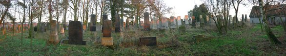 Wraz z postępem czasu zmieniają się inskrypcje. Stopniowo pojawia się alfabet łaciński, zazwyczaj razem z hebrajskim. Przykłady takich rozwiązań pojawiają się od lat 30. XIX wieku. Bardzo często w języku niemieckim umieszcza się proste formuły informujące tylko o imieniu, nazwisku zmarłego oraz dacie urodzenia i śmierci. Czasami towarzyszy im wyrażenie życzenia wiecznego odpoczynku. Stopniowo i te inskrypcje ulegają wzbogaceniu - pojawiają się dokładniejsze opisy określające daną osobę ( Unser Vater, Mutter itd.). |