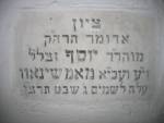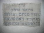 Na szczytowej, wewnętrznej ścianie ohelu zawieszono tablicę z napisem: "Ten ohel został zbudowany przez dwóch szwagrów: pobożnego pana Jehudę Menachema Boim, oby jego światło świeciło nadal! Z Bnei Brak.Dla cudownych rodziców: Pobożny pan Abraham Mosze, syn pana Simche Bunema, niech pamięć sprawiedliwego będzie błogosławiona! Zmarł 12 tewet 725 (17.12.1964). Cnotliwa pani Breindel, pokój niech będzie z nią!Córka pana Cwi Mordechaja, niech pamięć sprawiedliwego będzie błogosławiona! Zmarła 1 dnia święta Sukot-16 tiszri 707 (11.10.1946). Są czwartym pokoleniem starego admora z Warki, niech pamięć sprawiedliwego będzie błogosławiona dla wiecznego życia! Pobożnego pana Nachmana ha-Lewi Alboim, oby jego światło świeciło nadal! Z Nowego Jorku. Dla cudownych rodziców: Pobożny pan Icchak Ajzyk ha-Lewi, niech pamięć sprawiedliwego będzie błogosławiona! Cnotliwa pani Chaja Szprynca Asnat, pokój niech będzie z nią! (tłum. R. Uszyńska, 12 tewet [5]725 r. - 17.12.1964 r., 16 tiszri [5]707 r. - 11.10.1946 r.).