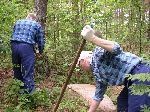 | Narewka - więźniowie sprzątają cmentarz żydowski (foto: A. Cyruk) |