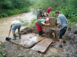 Jaśliska - wydobywanie macew z potoku |